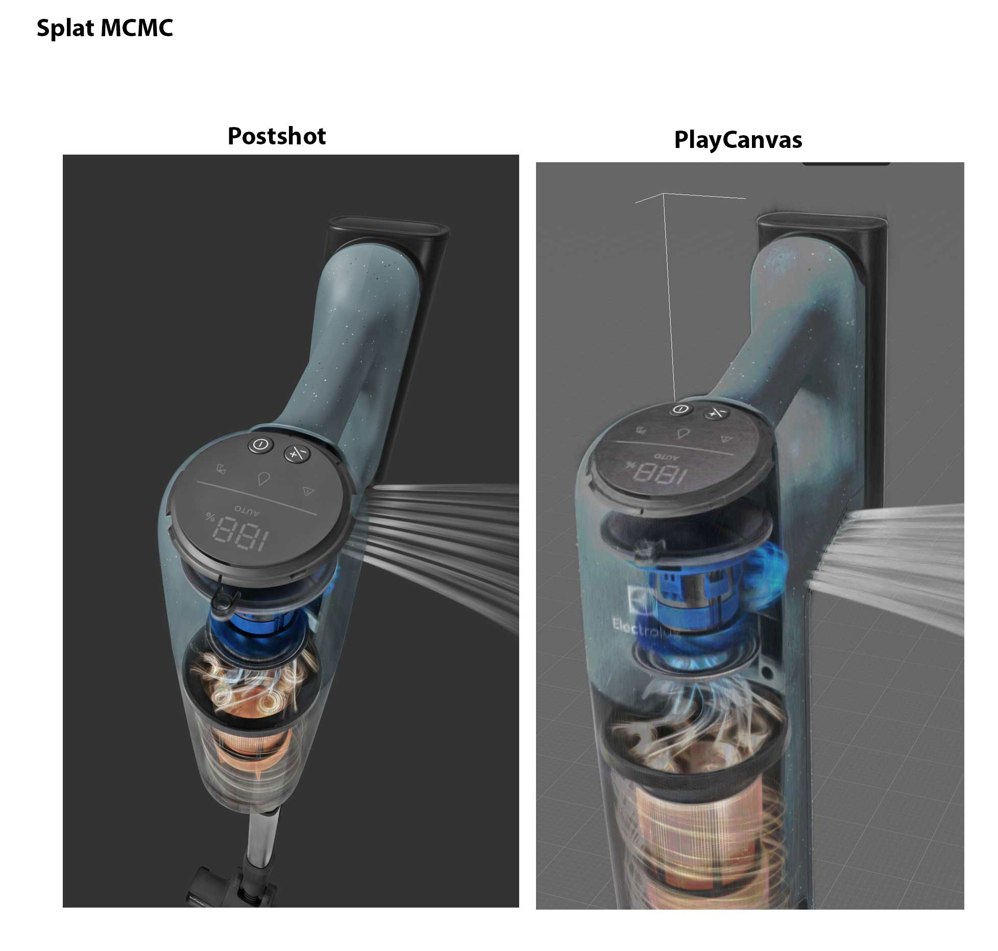 The problem is that the gaussian splatting models trained with MCMC method do not look nice in the PlayCanvas or the SuperSplat editor. It looks like the Spherical Harmonics is missing, reflections are gone and the colors are a bit off.