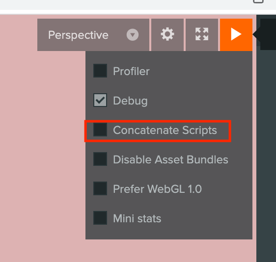 There’s a bug where this option doesn’t work: Concatenate scripts doesn't work in the launch tab · Issue #687 · playcanvas/editor · GitHub
