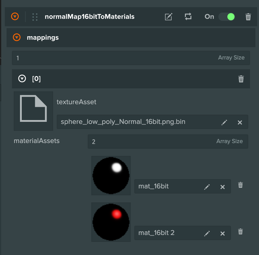 I’ve updated the project to have a more generic script that has an array of mappings of the 16 bit PNG binary to material assets to apply to.