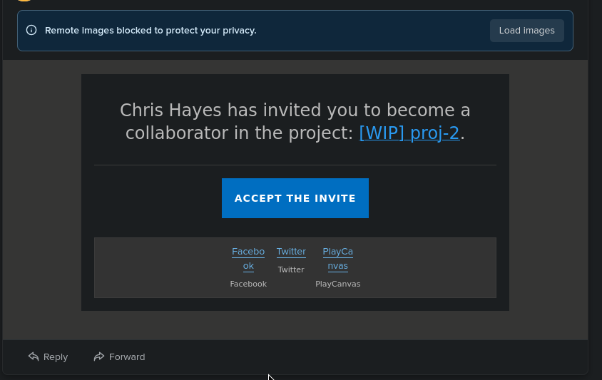 This is made more confusing when for the person receiving the invite to a non-existing PlayCanvas account, to me it looks like a normal invite to my real account by a different email: