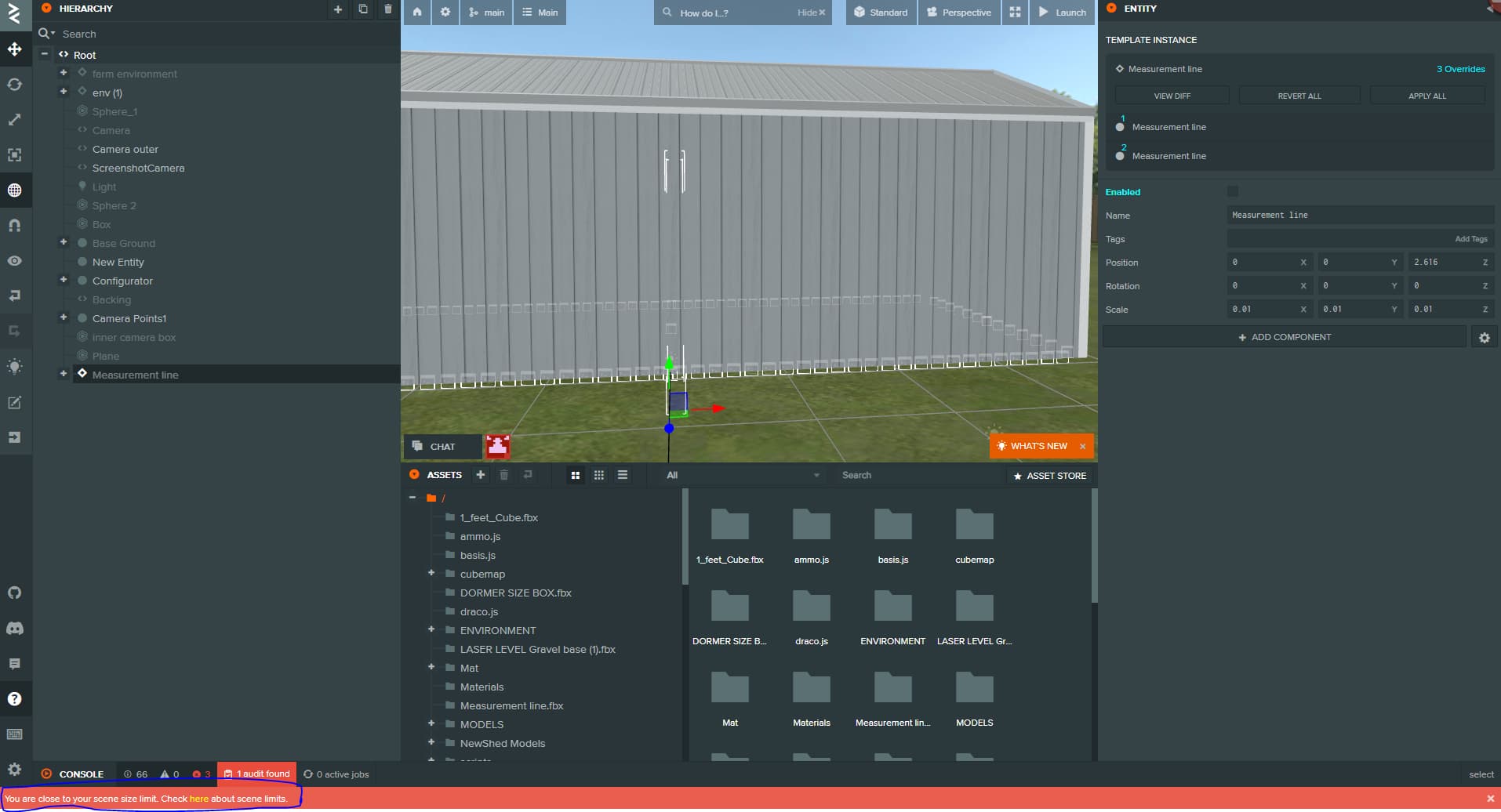 I’m working on a project in PlayCanvas and my scene has reached the maximum size limit. Because of this, I’m unable to add more assets or make further changes.