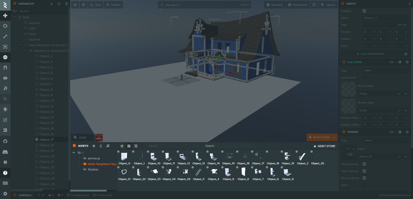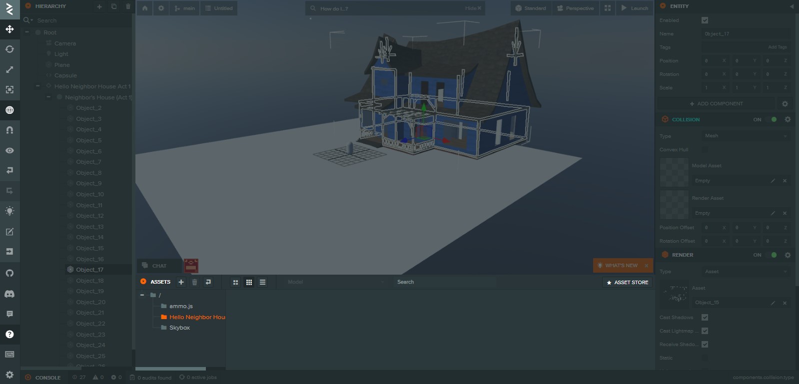 I’m trying to create a collision for a building from Act 1 in my PlayCanvas project.