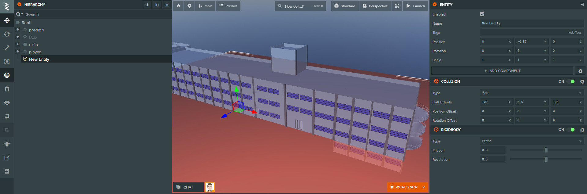 Timestamp 2:33: Switch to ‘Predio1’. Note that the ground collision in ‘Predio1’ fails, causing the player to fall.