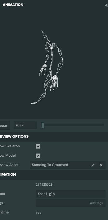 In PlayCanvas Animation Viewer, some animation clips display the skeleton in red while others in white.
