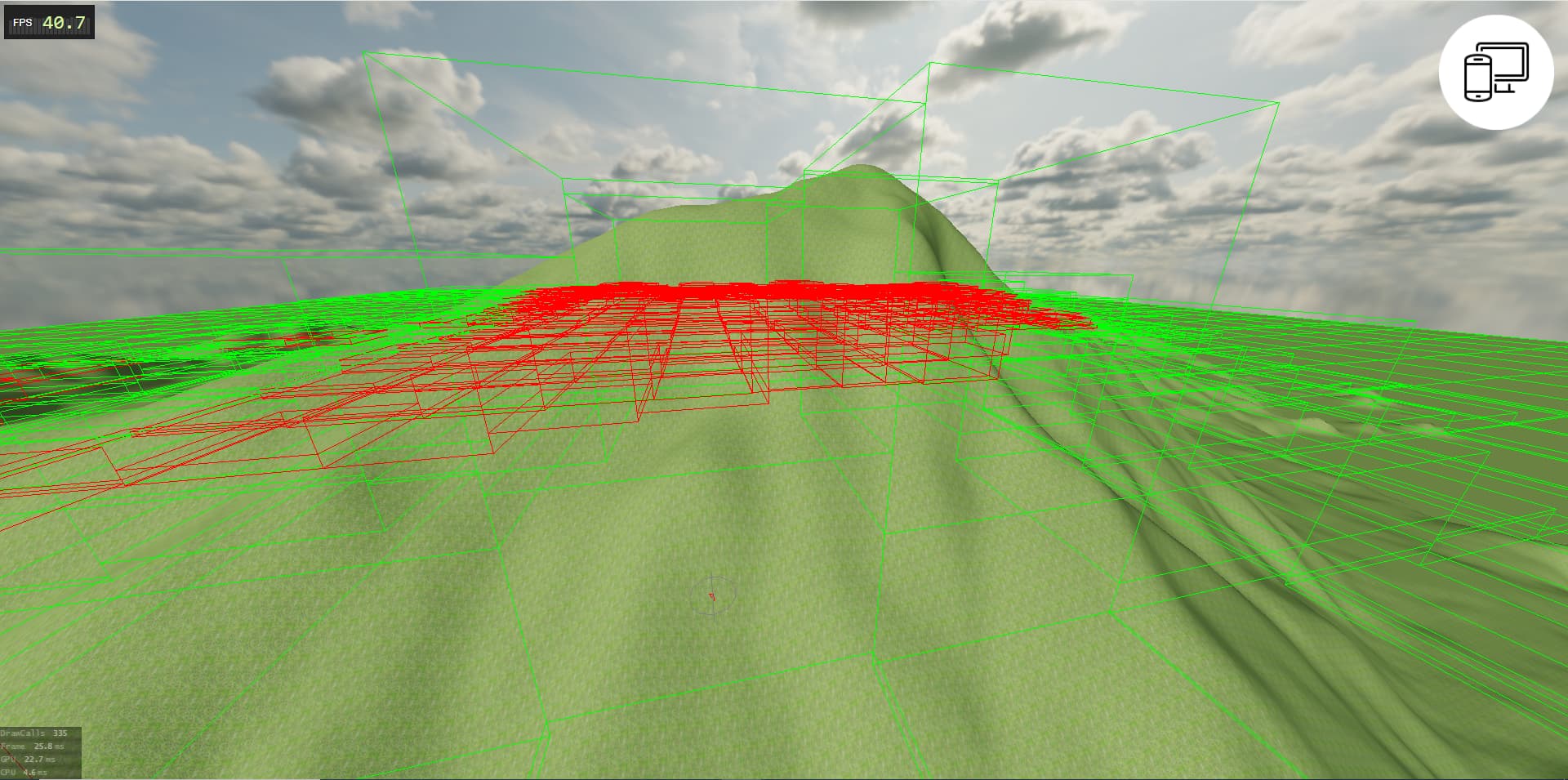 Now, the combination of frustum culling and LOD management allows for optimal segmentation of the landscape, providing the desired level of detail or fragmentation.