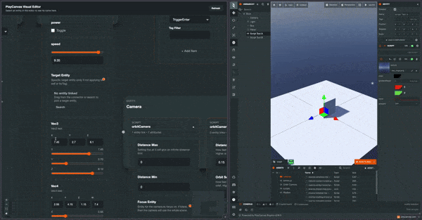 Bi-directional Sync: Everything syncs with the PlayCanvas Editor in real-time.
