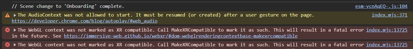 [playcanvas-1.63.4.js:67268]: Failed to construct ‘XRWebGLLayer’: WebGL context must be marked as XR compatible in order to use with an immersive XRSession.